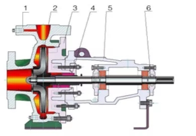 1、泵體 2、葉輪 3、泵蓋 4、機(jī)械密封 5、懸架部件 6、泵軸