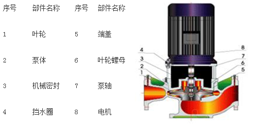 注:管道離心泵吸入壓力≤1.0MPa,或泵系統工作壓力≤1.6MPa,即吸入口壓力+泵揚程≤1.6MPa、泵靜壓試驗壓力為≤2.5MPa,訂貨時請注明系統工作壓力。泵系統工作壓力大于1.6MPa時應在訂貨時另行提出,以便在制造時泵的過流部分和聯接部分采用鑄鋼材料。環境溫度<40℃,相對濕度<95。