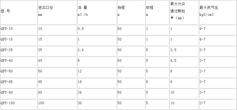 QBY氣動隔膜泵性能參數