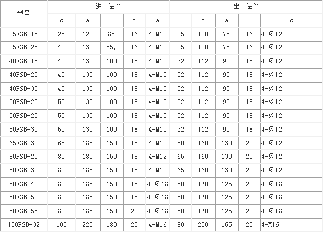 FSB氟塑料合金離心泵法蘭尺寸